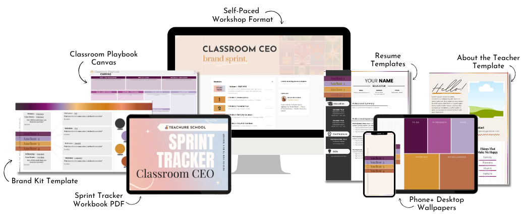 The Classroom CEO: Brand Sprint is a self-paced experience designed to help you discover your teacher brand, define your leadership identity, and give it language you can actually use.