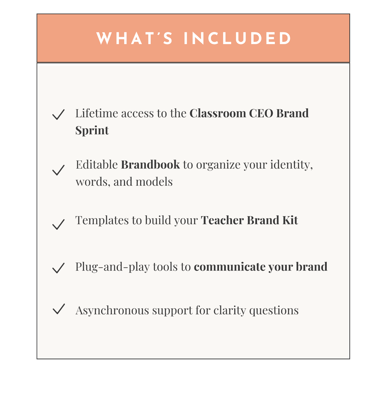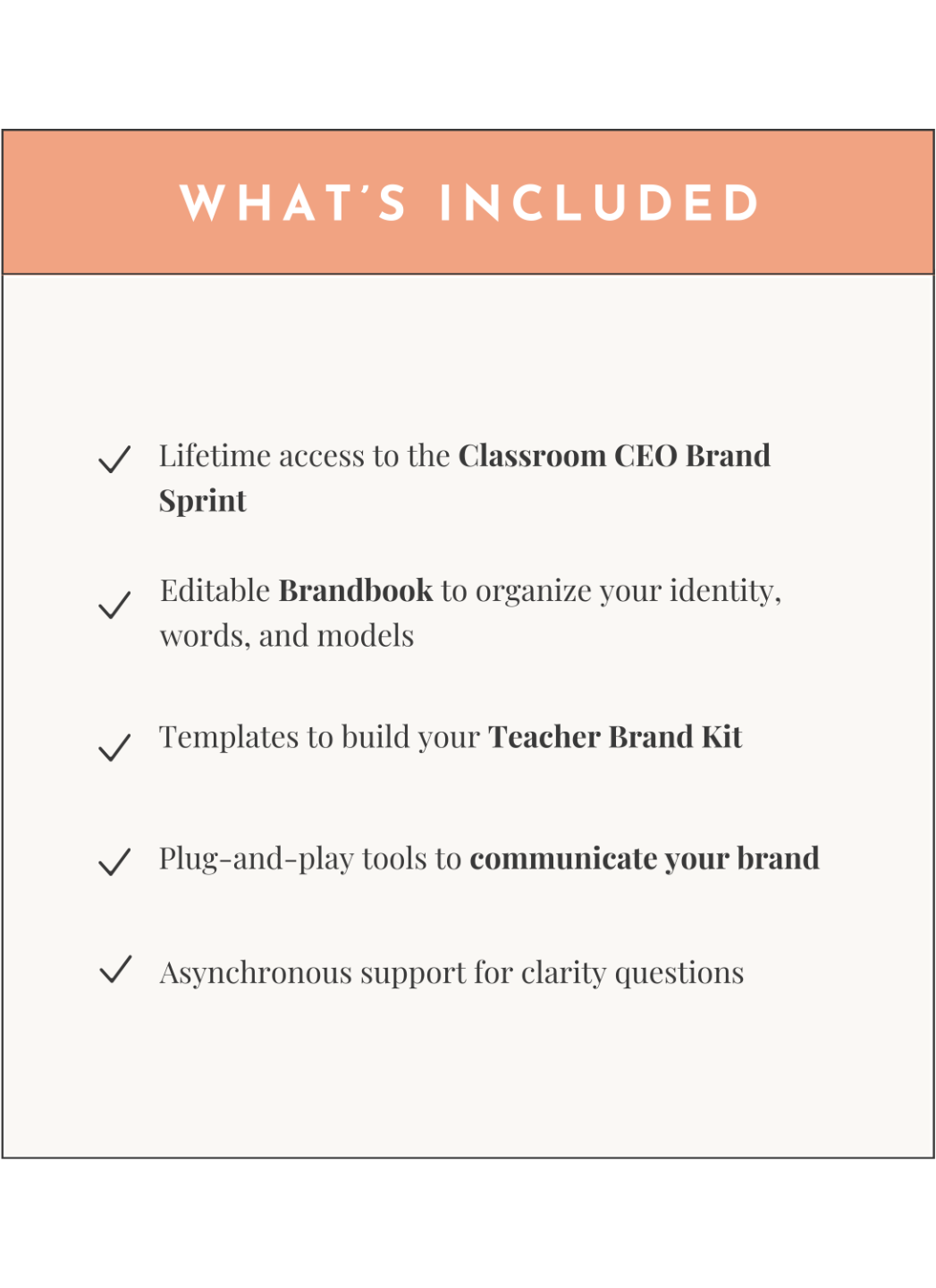 With the Classroom CEO Brand Sprint, you’ll walk away with a refined identity, tools you can actually use, and a framework for leading with intention — not guesswork.