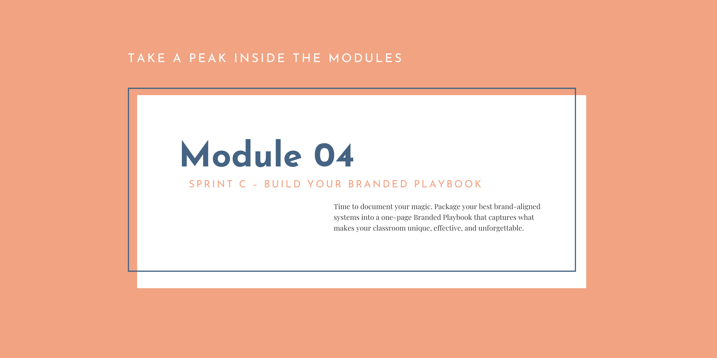 You've built the system. You've defined the brand. Now it's time to document it. The Branded Playbook is where everything comes together into one living document that captures your classroom experience and makes it replicable, shareable, and entirely yours.