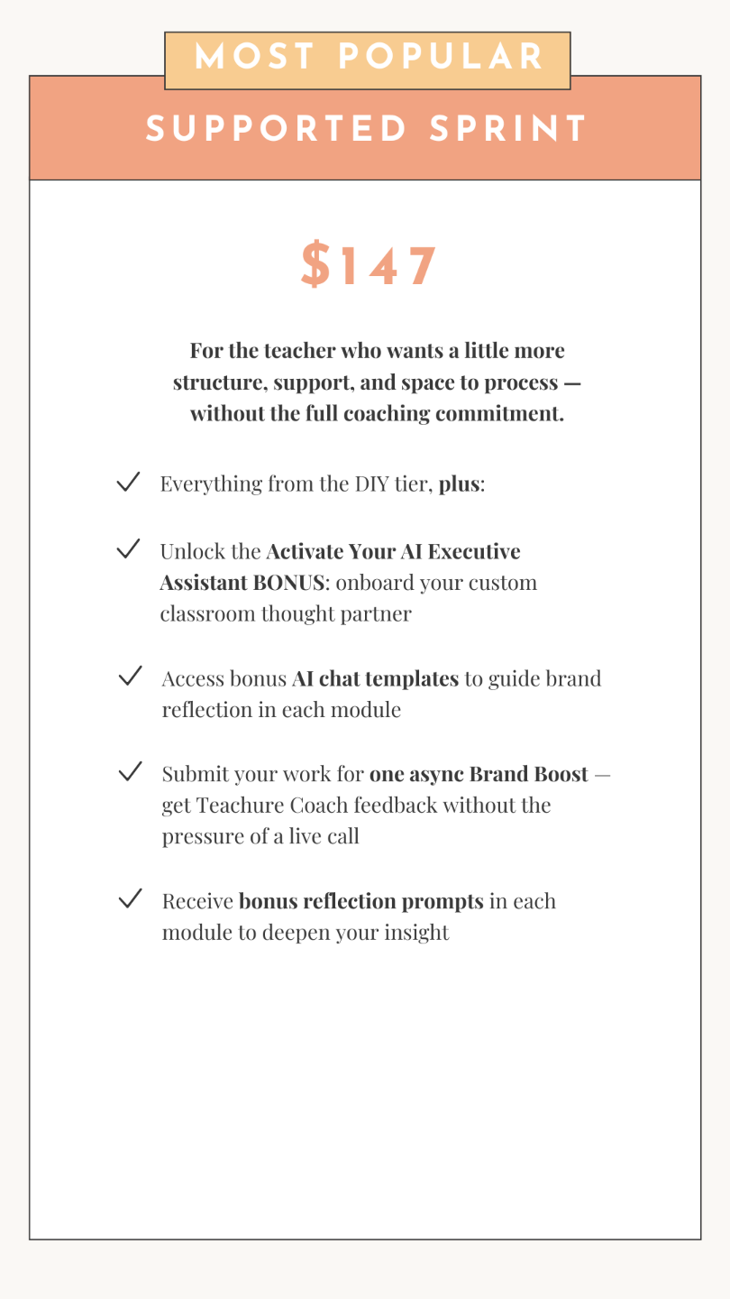 You already know what kind of teacher you want to be. The Brand Sprint gives you the language, the framework, and the tools to actually build it so your classroom stops looking like every other classroom on the hall and starts looking like you.